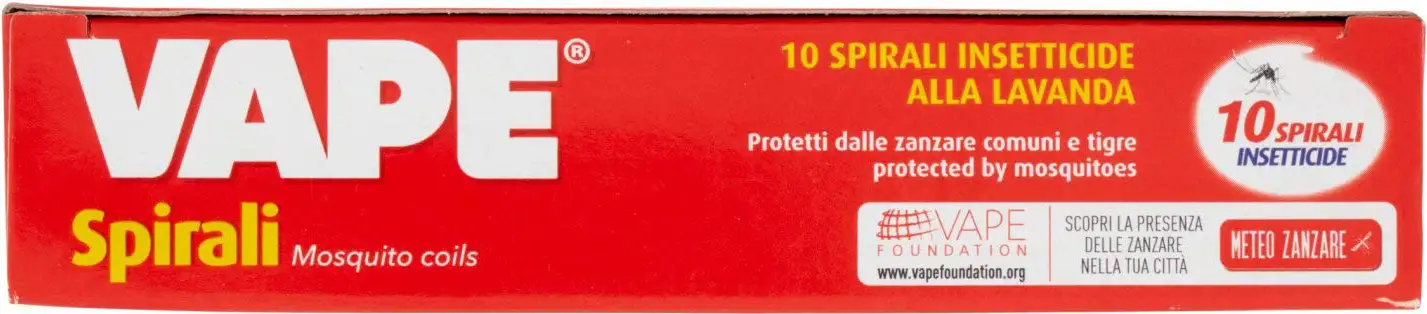 Le spirali zanzarifughe Vape tengono lontano zanzare, pappataci e insetti volanti. Disponibili in 3 piacevoli fragranze: garanio, citronella e lavanda.