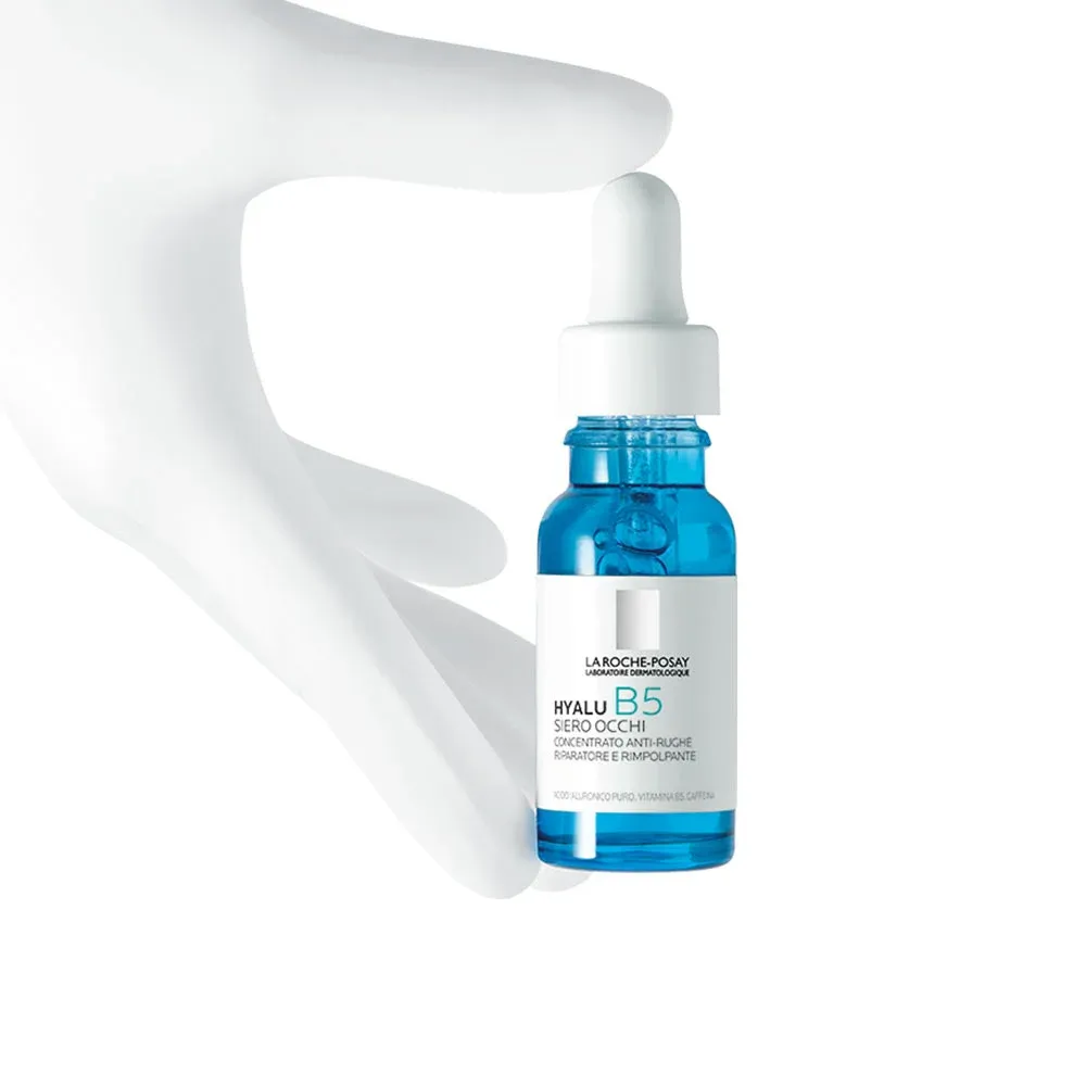 Hyalu B5 siero occhi anti-rughe e anti-occhiaie. Rimpolpa le rughe e corregge le occhiaie. Concentrato con ingredienti attivi dall'elevata efficacia e tollerabilità. Per tutti i tipi di pelle. Testato su pelle sensibile e sotto controllo oftalmologico. Adatto in caso di utilizzo di lenti a contatto. Senza profumo.