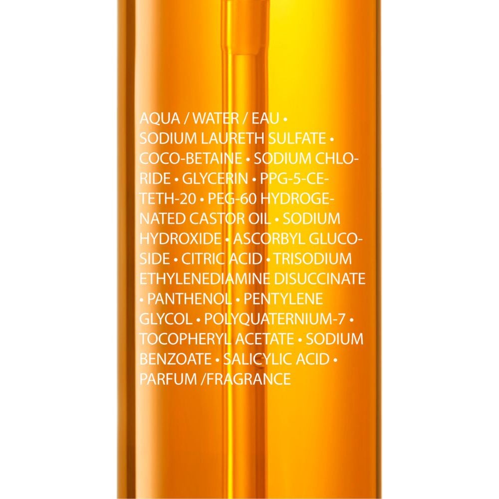 Aqua/Water, Sodium Laureth Sulfate, Coco-Betaine, Sodium Chloride, Glycerin, PPG-5 Ceteth-20, PEG-60 Hydrogenated Castor Oil, Sodium Hydroxide, Ascorbyl Glucoside, Citric Acid, Trisodium Ethylenediamine Disuccinate, Panthenol, Pentylene Glycol, Polyquaternium-7, Tocopheryl Acetate, Sodium Benzoate, Salicylic Acid, Parfum/Fragrance.