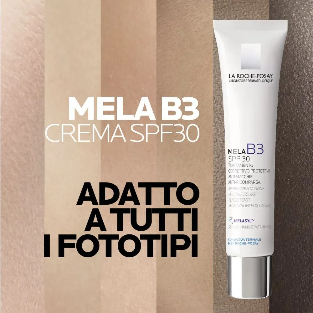 Mela B3 Crema SPF30 Trattamento correttivo e protettivo, anti-macchie. Correzione delle macchie scure persistenti. SPF 30 e protezione contro gli UVA e UVB durante l'esposizione quotidiana al sole. Uniforma il colorito della pelle e previene l'iperpigmentazione. Raggiunge un'efficacia e una tollerabilità ottimale anche per la pelle sensibile. Non comedogeno.