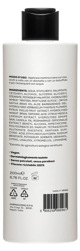 Applicare mattina e sera sul viso con un dischetto o un batuffolo di cotone e poi risciacquare.