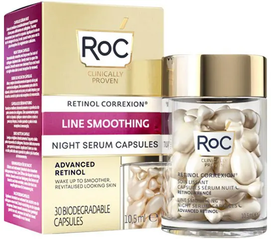 Un potente trattamento notte contenuto in una capsula vegetale biodegradabile, sigillata ermeticamente per una perfetta conservazione. Le capsule siero notte levigante della linea Correxion al Retinolo di RoC, fondendosi perfettamente sulla pelle, trattano le rughe sottili e profonde, levigano notevolmente l'incarnato e migliorano l'aspetto della pelle carente di collagene.