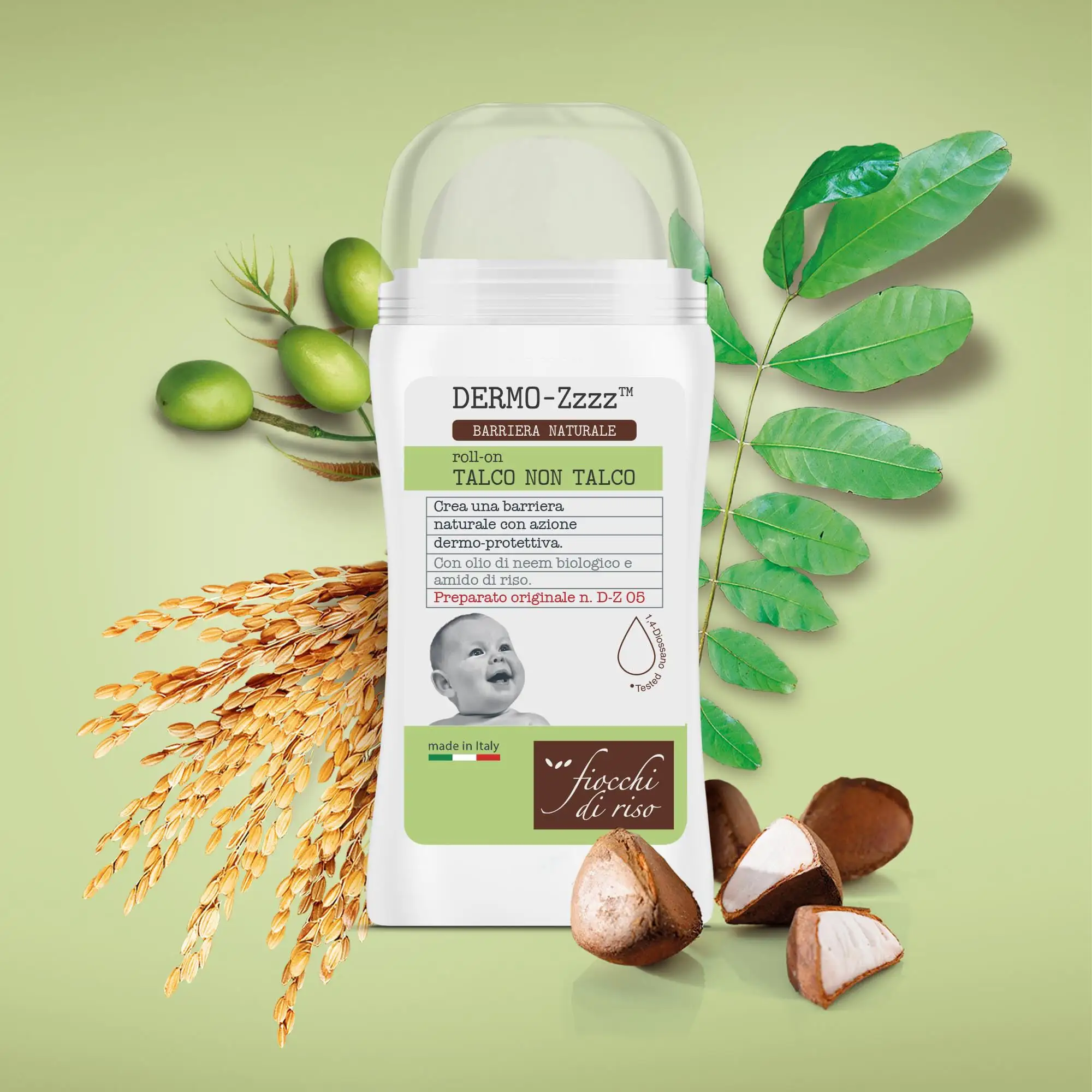 Il Talco Non Talco di Fiocchi di Riso rispetta l'equilibrio della pelle grazie ad una formulazione dermocompatibile che regola sudorazione e odori creando un aroma-barriera.