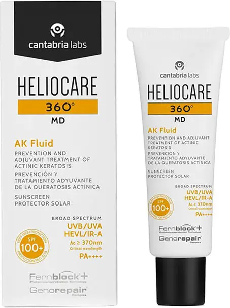 Heliocare 360° Md Ak fluid spf100+ è un fluido indicato per la prevenzione e il trattamento coadiuvante protettivo della cheratosi attinica (AK) e di altre forme di tumore cutaneo non melanoma (NMSC).